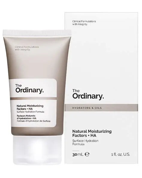The Ordinary Natural Moisturizing Factor + HA is a lightweight moisturizer designed to hydrate and support the skins natural barrier. Enriched with ingredients like hyaluronic acid, amino acids and ceramides. Hyaluronic acid helps retain moisture in the skin, providing hydration and plumpness. Amino acids help in maintaining skin's moisture balance and barrier function. Ceramides maintain skin's protective barrier, preventing moisture loss and enhancing skin resilience.